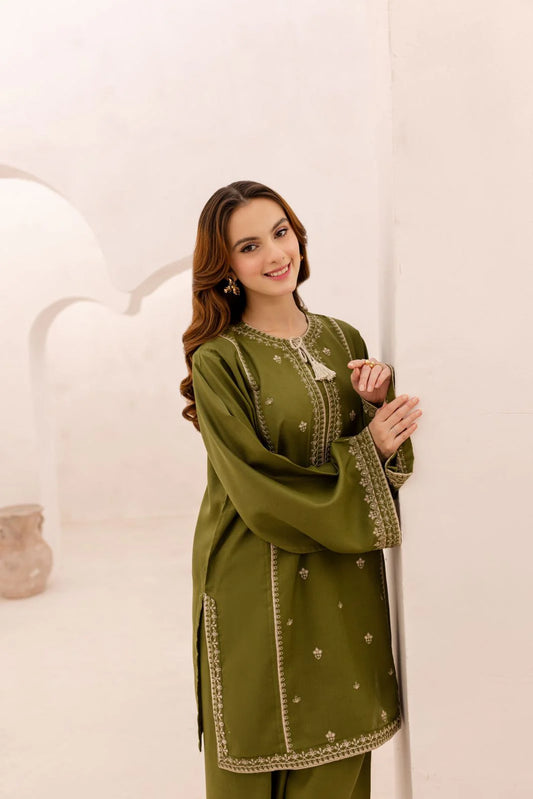 Olive- Embroidered Co-Ord Set TWE-025
