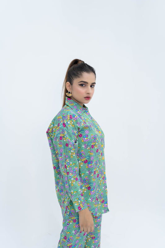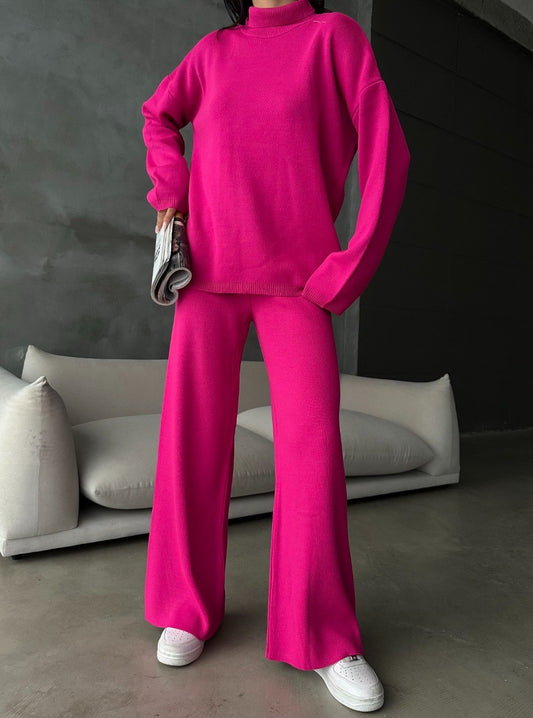 Crush Detailed Fuchsia Drop Shoulder Co-ord Set