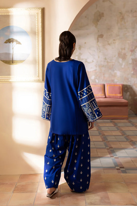 Royal Blue Embroidered Farshi Shalwar Suit TWE-028