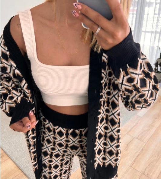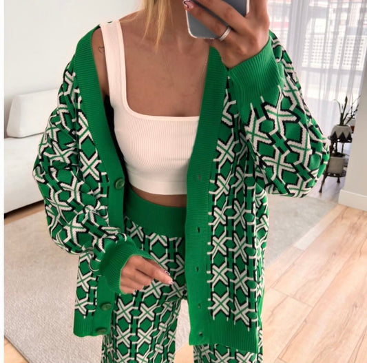 Button Down Wool Cardigan Sweater Knit Co-ord Set