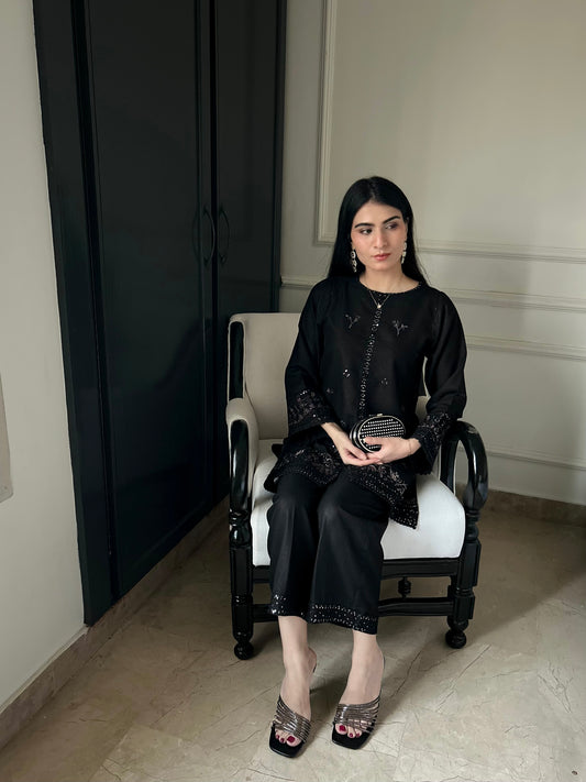 BLACK CROSS STITCH SHALWAR SUIT 2PC TWE-047