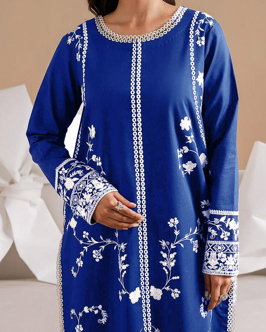 Royal Blue Embroidered Farshi Shalwar Suit TWE-028