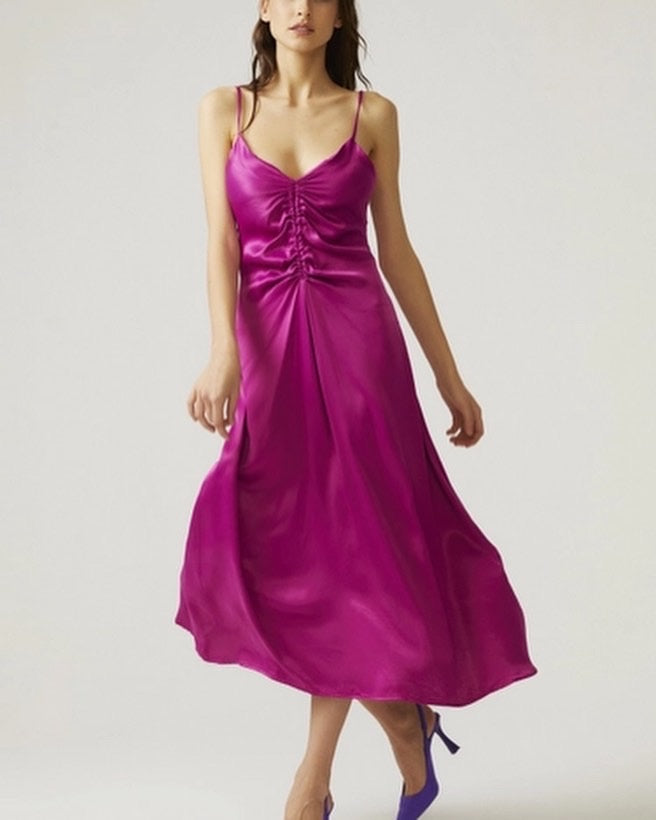Pink Pleated Silk Dress