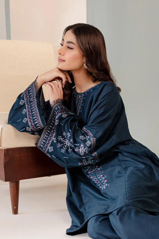 Royal Blue Embroidered Farshi Shalwar Suit TWE-028