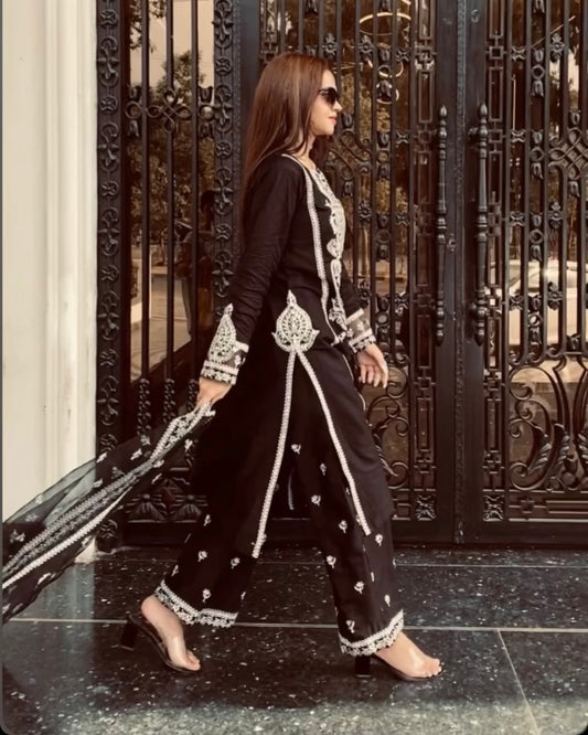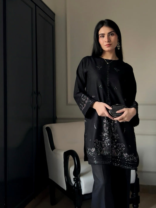 BLACK CROSS STITCH SHALWAR SUIT 2PC TWE-047