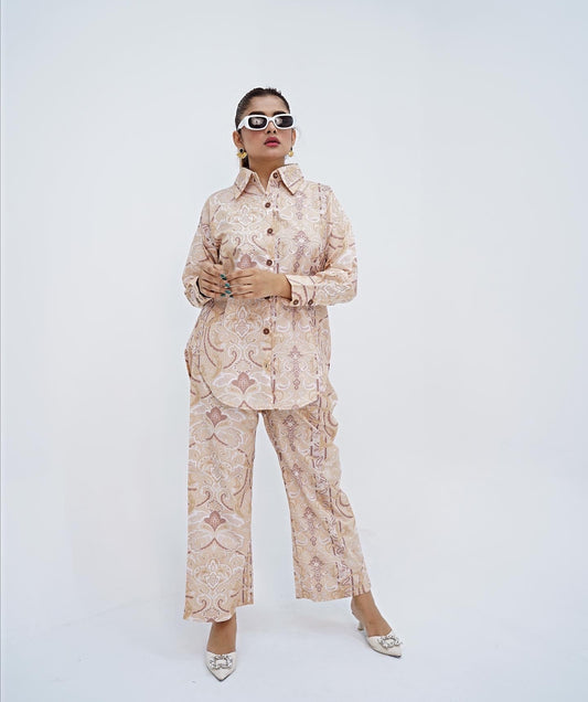 Rose-White European Linen Drop Shoulder Co-ord Set